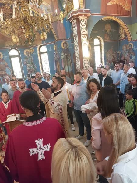 Данас смо се помолили да Анђела не буде само чедо тела, чедо матере, чедо пропадљивости, већ чедо Царства Небеског и на све то ви сте рекли Амин. Оно што је битно јесте да се знамо обрадовати том чину не само због Анђеле већ и због нас самих недостојних који смо крштени али неретко потиснемо ту одећу крштења и тај залог који нам је дат а то је залог Духа Светога. Зато смо се ми данас успели опоменути шта се то у онај дан збило са нама кад нас је кум привео крштењу, да се подсетимо, да не држимо то као нешто обављено већ да се опеменемо и преиспитамо своје срце, своју душу, свој ум и свој разум и да све то буде преображено, сваки грех у врлину, свако зло у добро, сваки немир у спокојство.