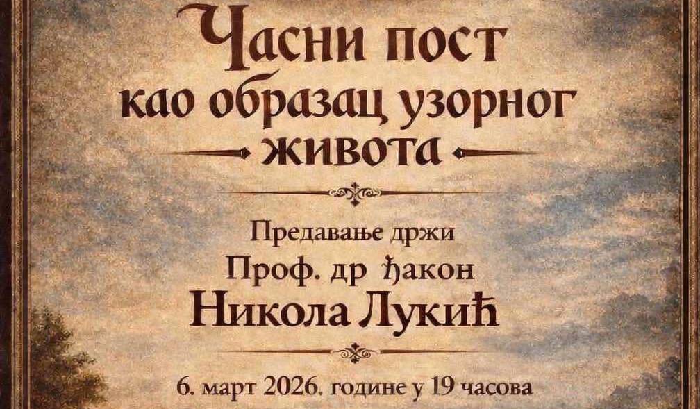 Предавање: Часни пост као образац узорног живота, петак 6. март, 19ч